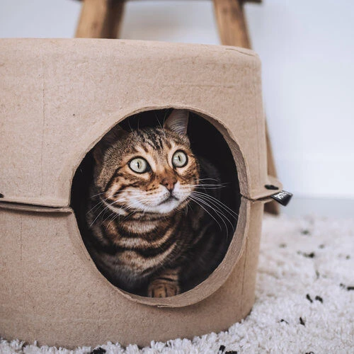 Speziell für Katzen, die Karton lieben und sich gerne verstecken, gibt es den Bunker von Distrikt 70.