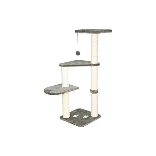 Trixie Kratzbaum Altea ist ein großes Kratzbaumöbel mit mehreren Plateaus. Diese sind mit grauem Plüsch bezogen.